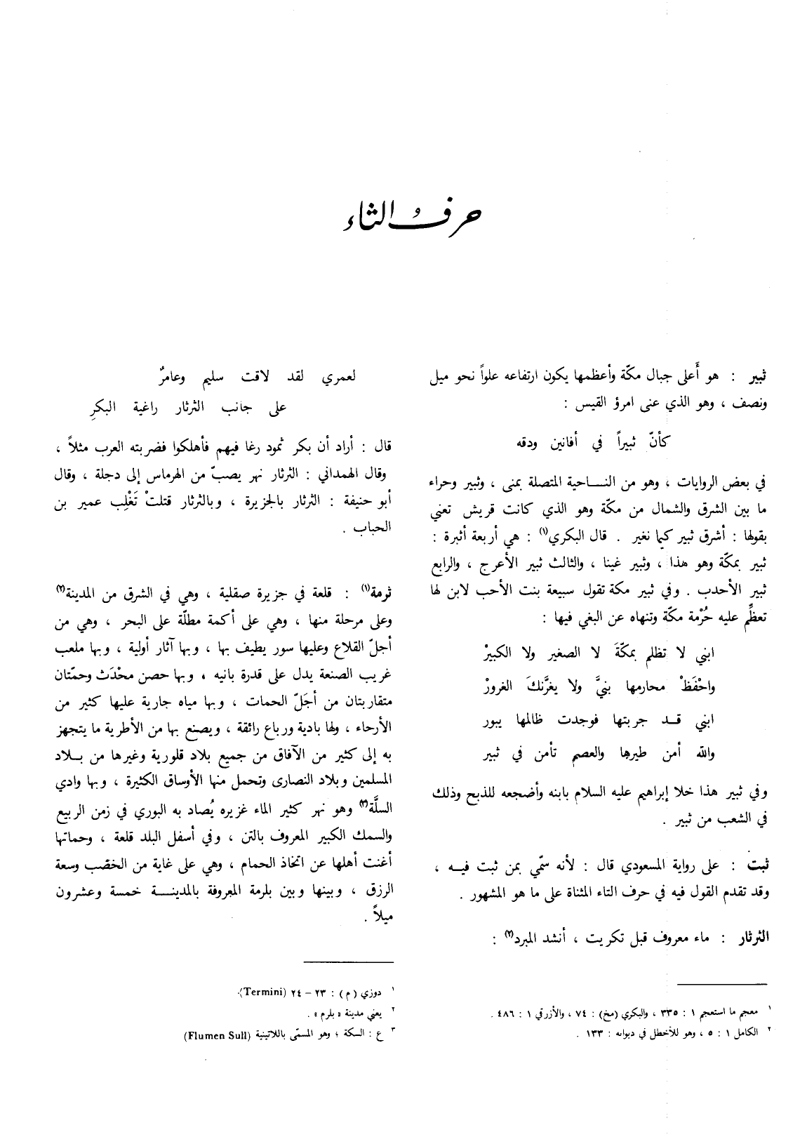 (1) معجم ما استعجم 1: 335، والبكري (مخ) : 74، والأزرقي 1: 486.