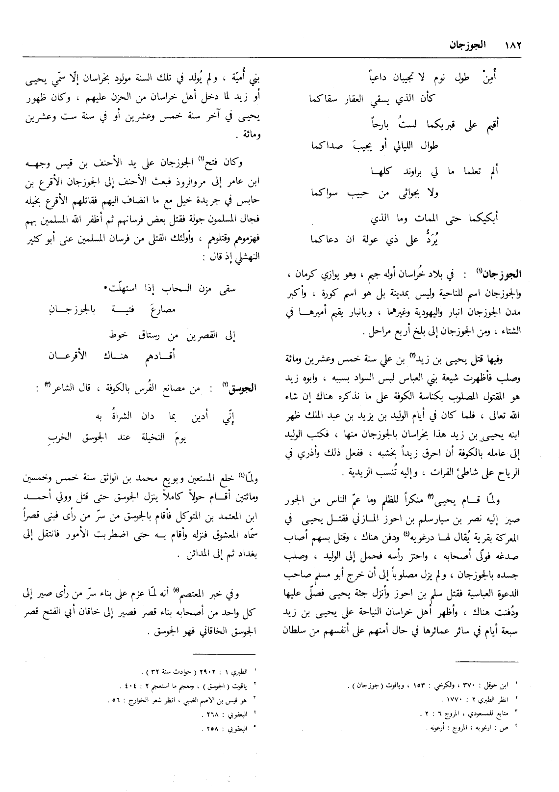 وكان فتح (5) الجوزجان على يد الأحنف بن قيس وجهه ابن عامر إلى مرو الروذ فبعث الأحنف إلى الجوزجان الأقرع بن حابس في جريدة خيل مع ما انضاف إليهم فقاتلهم الأقرع بخيله فجال المسلمون جولة فقتل بعض فرسانهم ثم أظفر الله المسلمين بهم فهزموهم وقتلوهم، وأولئك القتلى من فرسان المسلمين عنى أبو كثير النهشلي إذ قال:
