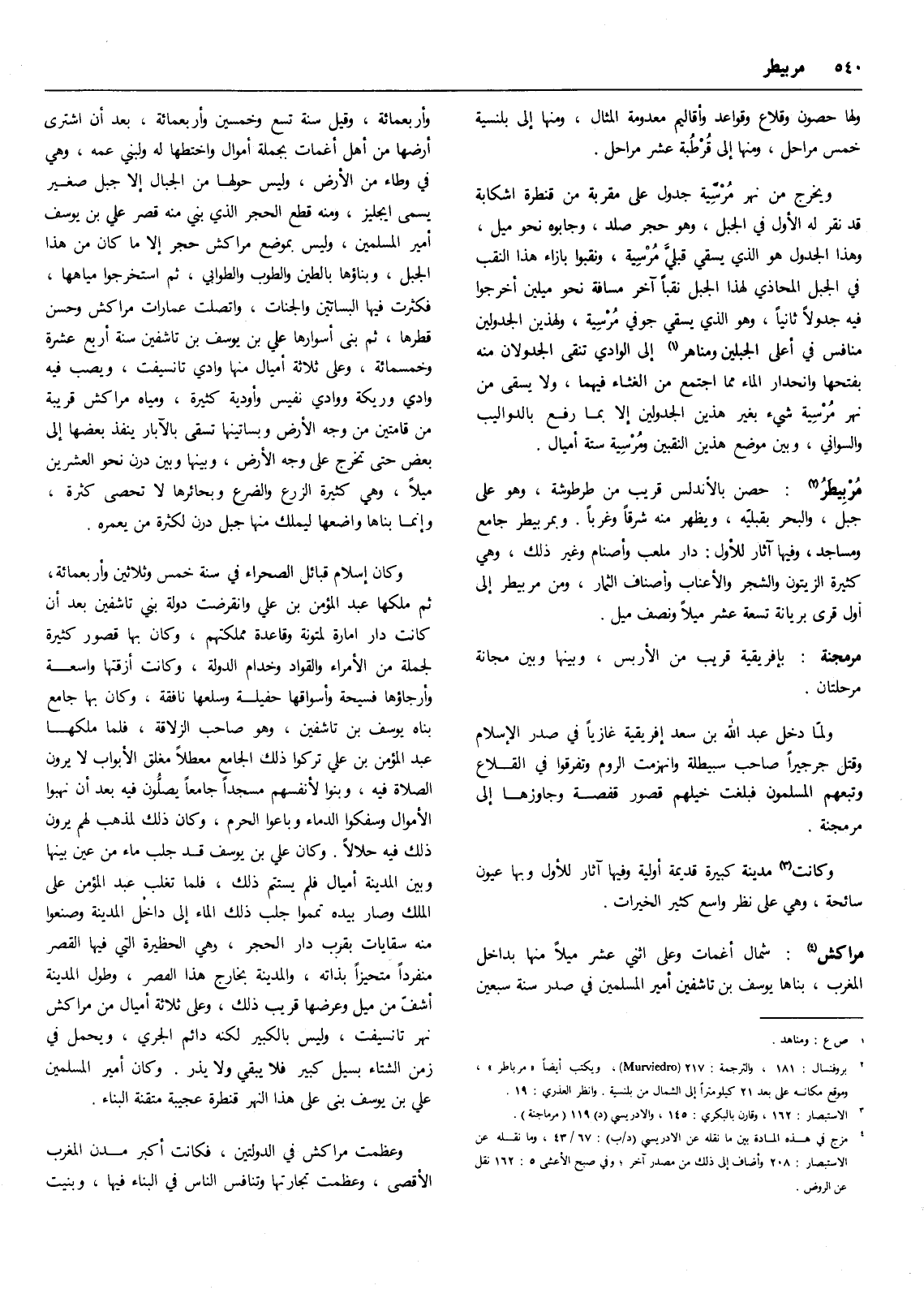 (2) بروفنسال: 181، والترجمة: 217 (Murviedro) ، ويكتب أيضاً ((مرباطر)) وموقع مكانه على بعد 21 كيلومتراً إلى الشمال من بلنسية. وانظر العذري: 19.