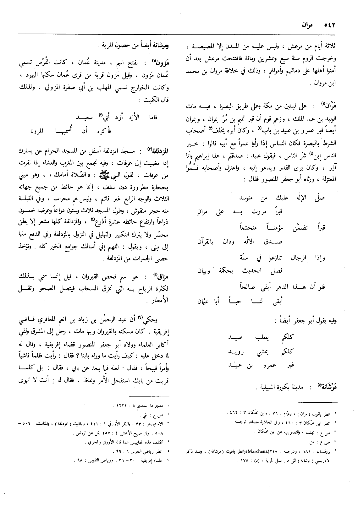 (1) انظر ياقوت (مران) ، وعرام: 76، وابن خلكان 3: 462.
