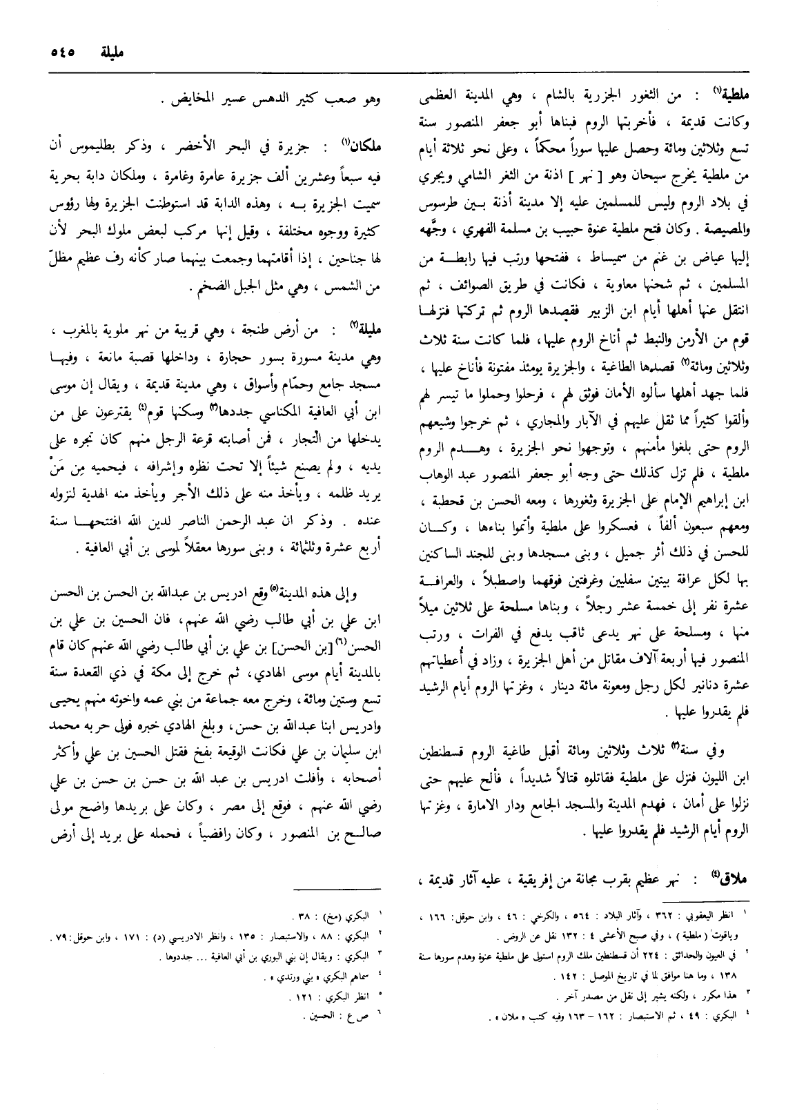 (1) انظر اليعقوبي: 362، وآثار البلاد: 564، والكرخي: 46، وابن حوقل: 166، وياقوت (ملطية) ، وفي صبح الأعشى 4: 132 نقل عن الروض.