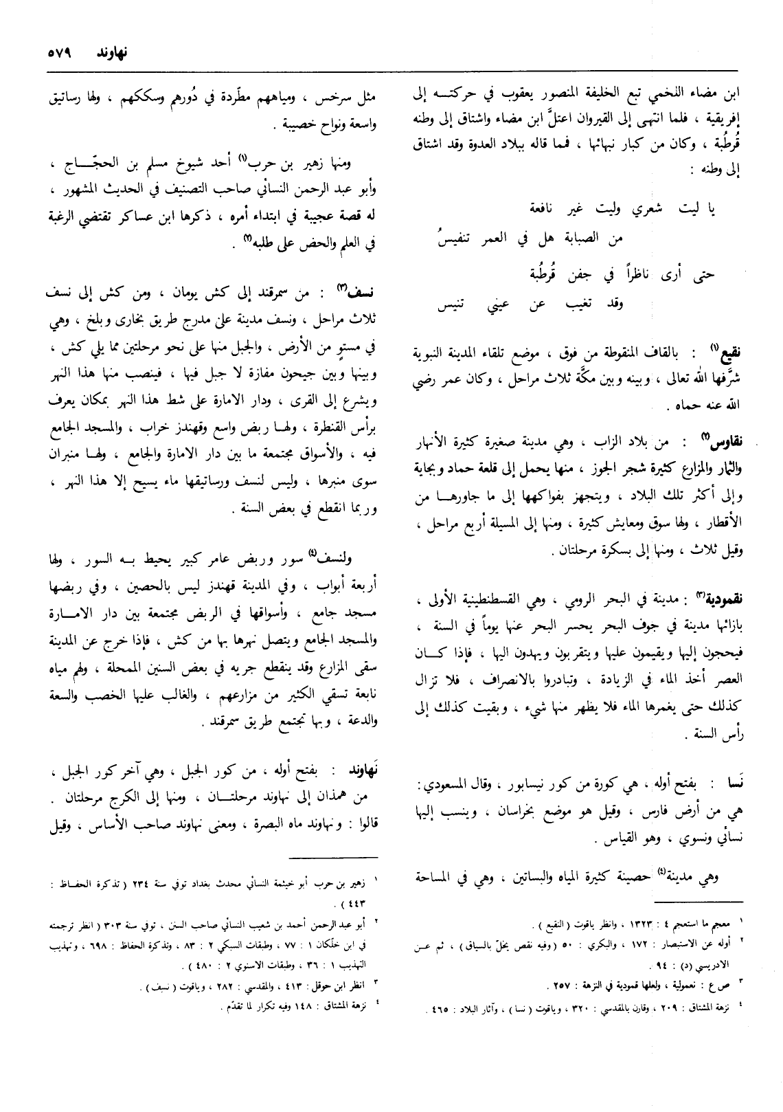 (4) نزهة المشتاق: 209، وقارن بالمقديسي: 320، وياقوت (نسا) ، وآثار البلاد: 465.