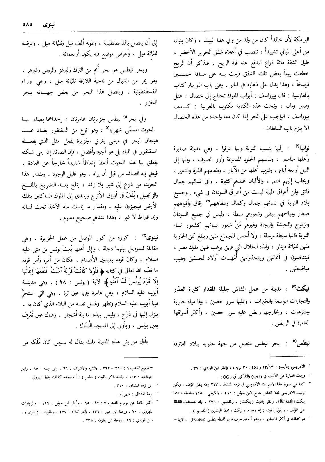 (4) هو كذلك في أكثر المصادر، ويبدو أنه تصحف قديم للفظة بنطس (Pontus) ، قارن بمروج الذهب 1: 260 - 262، والتنبيه والإشراف: 66، وابن رسته: 85، وابن خرداذبه: 103، وقد ذكر ياقوت (بنطس) : أنه وجده كذلك بخط البيروني.