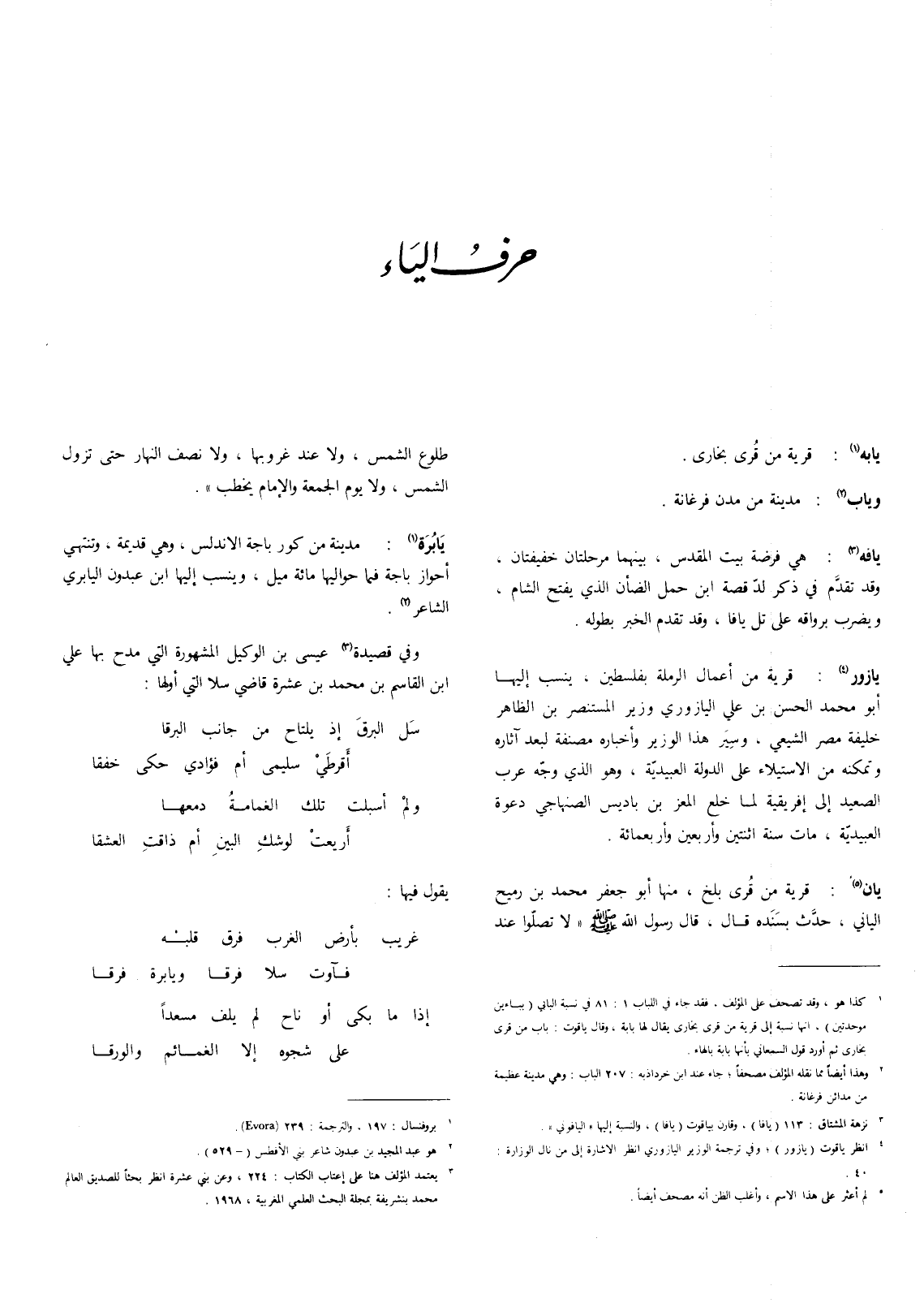 (4) انظر ياقوت (يازور) ؛ وفي ترجمة الوزير اليازوري انظر الإشارة إلى من نال الوزارة: 40.
