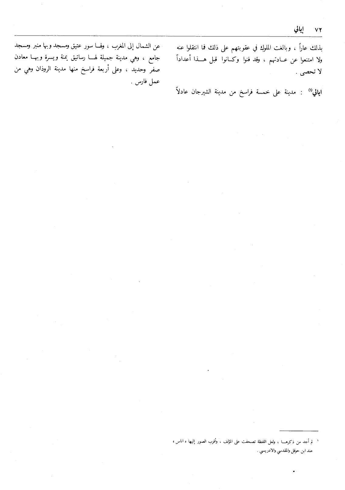 (1) لم أجد من ذكرها، ولعل اللفظة تصفحت على المؤلف، وأقرب الصور إليها " اناس " عند ابن حوقل والمقدسي والإدريسي.