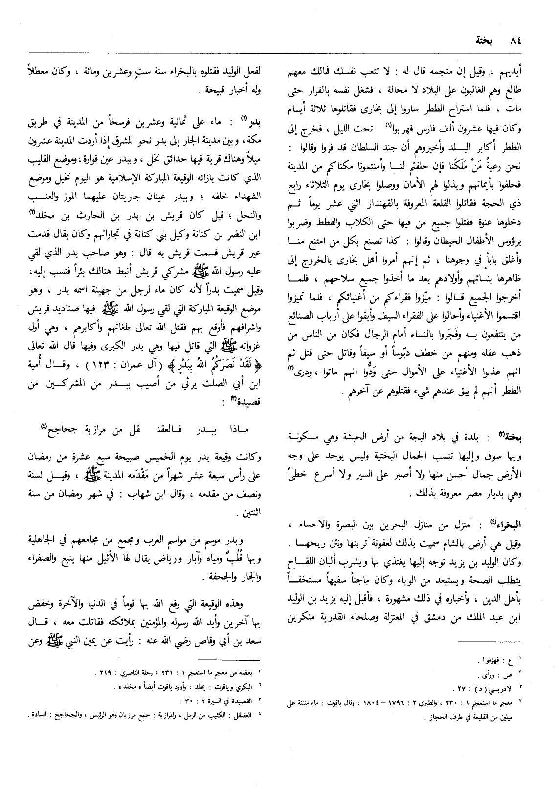 (4) معجم ما استعجم 1: 230، والطبري 2: 1796 - 1804، وقال ياقوت: ماء منتنة على ميلين من القليعة في طرف الحجاز.