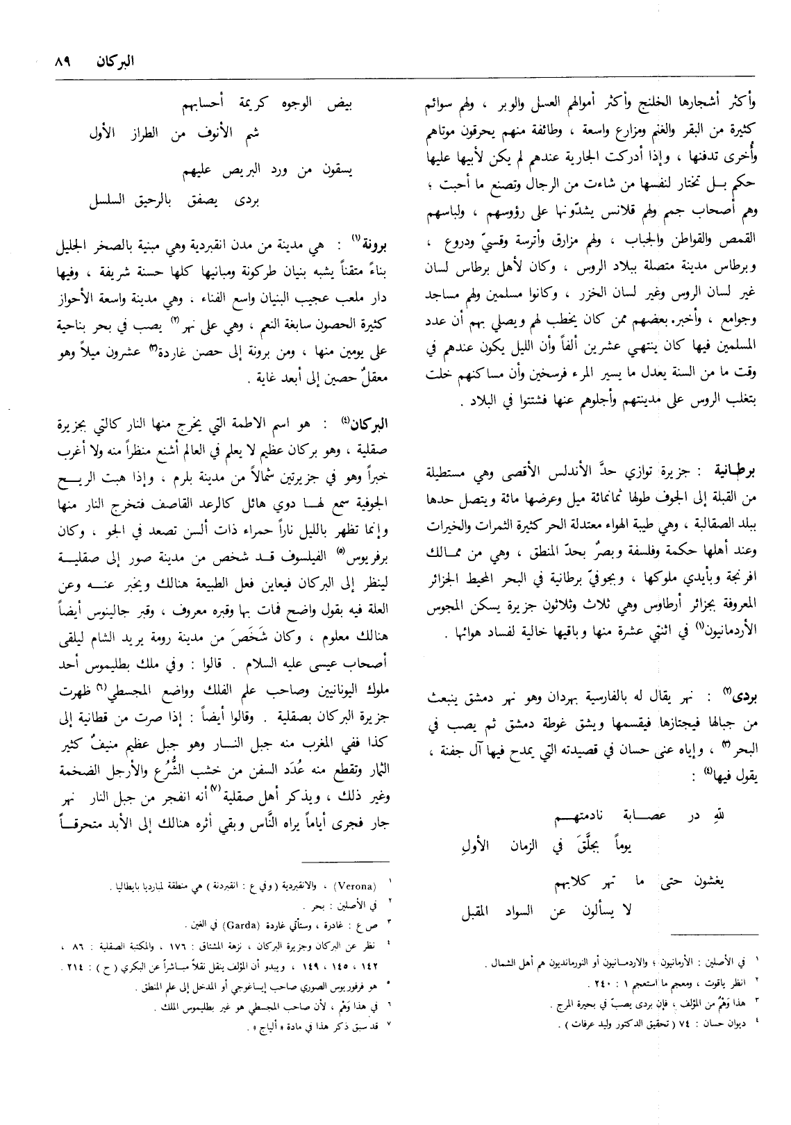 (8) نظر عن البركان وجزيرة البركان، نزهة المشتاق: 176، والمكتبة الصقلية: 86، 142، 145، 149، ويبدو أن المؤلف ينقل نقلاً مباشراً عن البكري (ح) : 214.