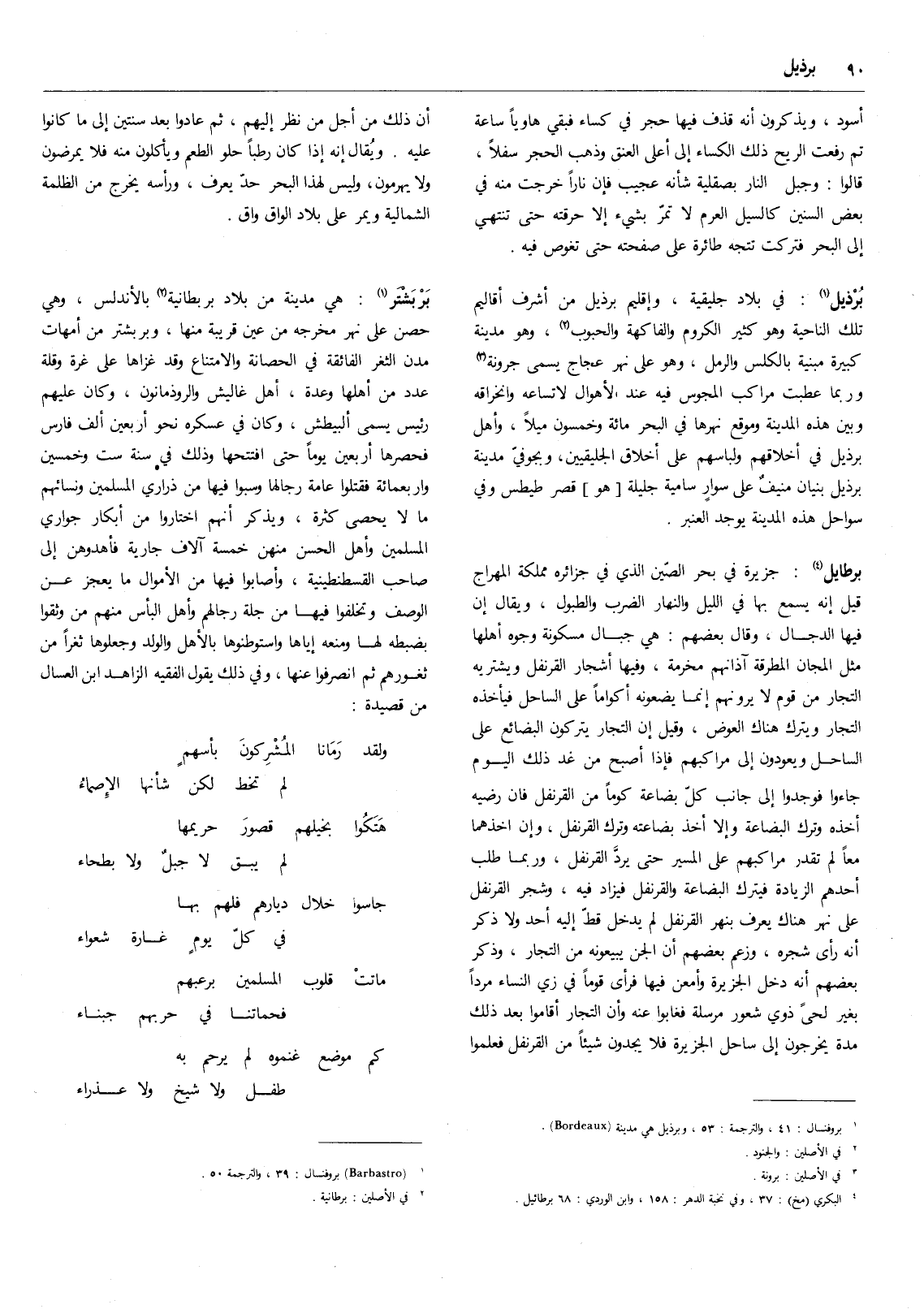 (1) برفنسال: 41، والترجمة: 53، وبرذيل هي مدينة (Bordeaux) .