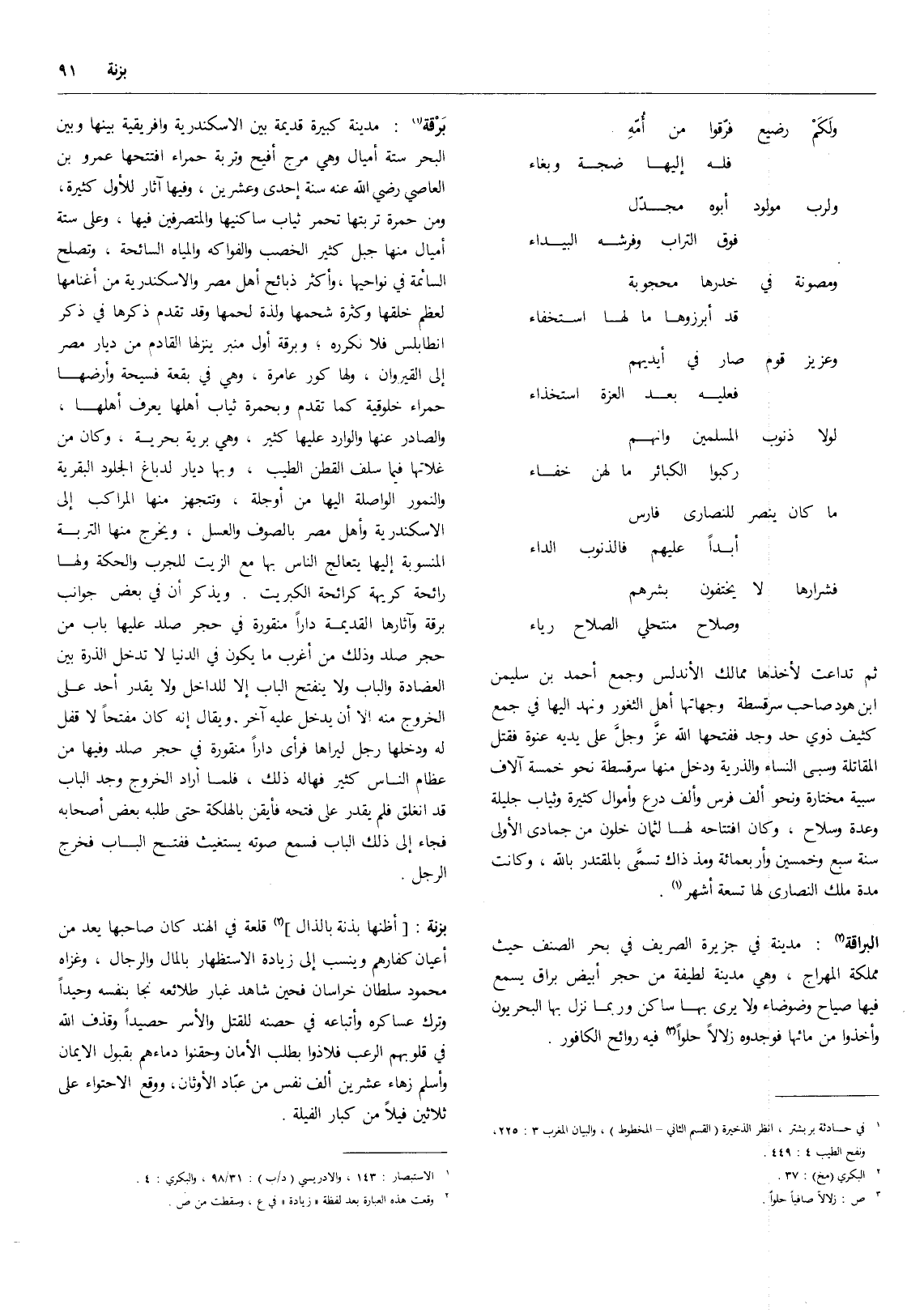 (1) في حادثة بربشتر، انظر الذخيرة (القسم الثاني - المخطوط) ، والبيان المغرب 3: 225: ونفح الطيب 4: 449.