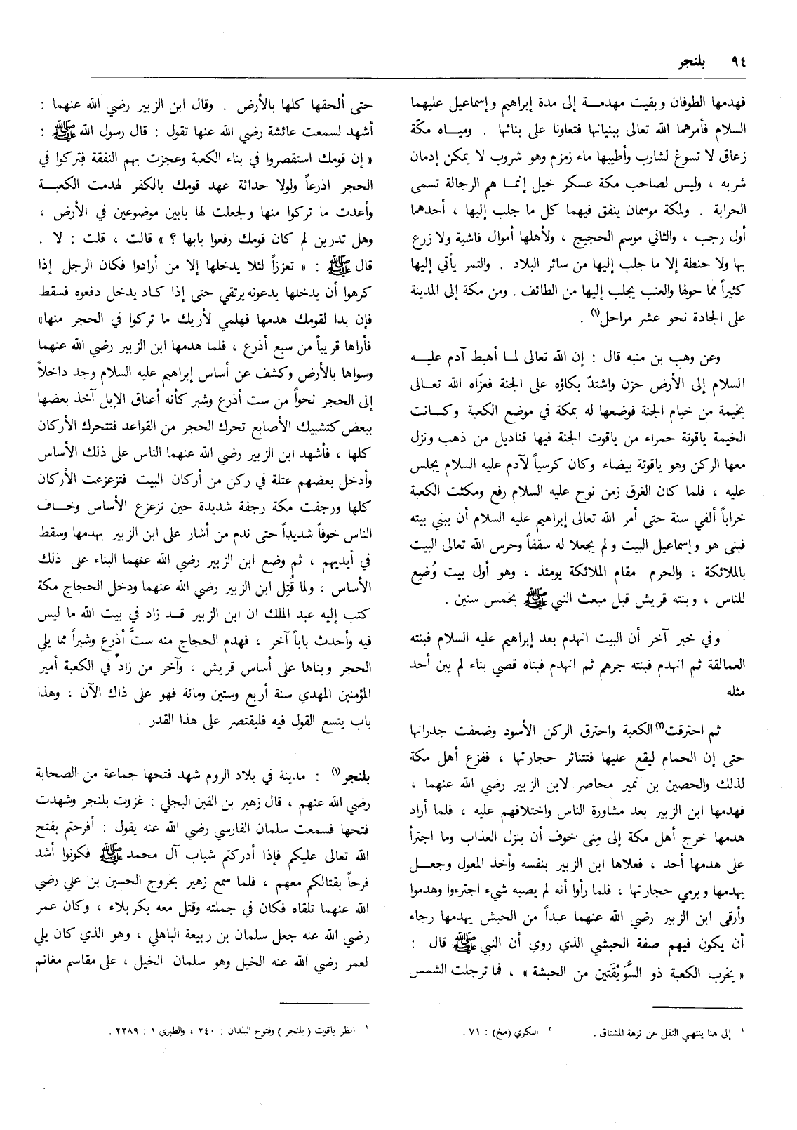 (3) انظر ياقوت (بلنجر) وفتوح البلدان: 240، والطبري 1: 2289.