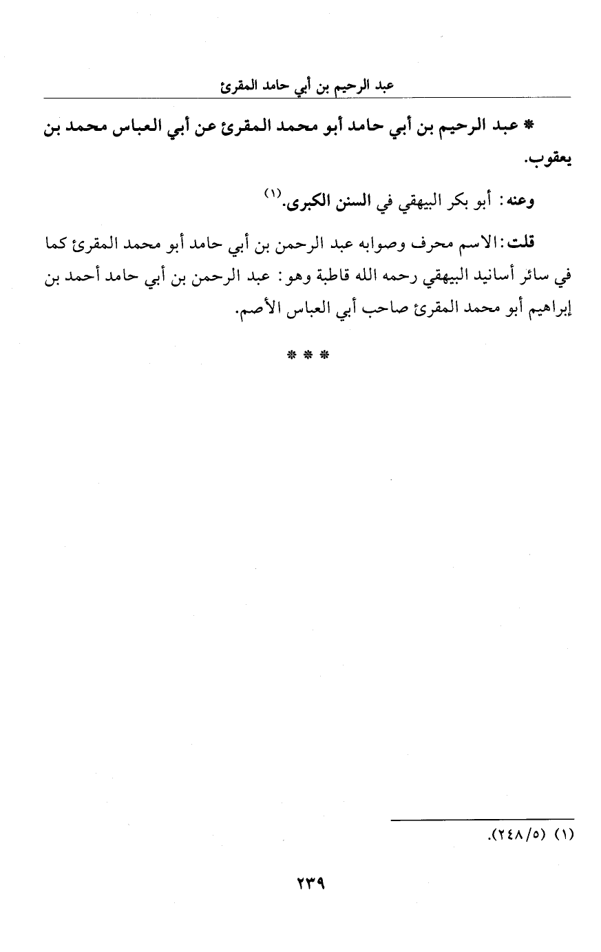 قلت: الاسم محرف وصوابه عبد الرحمن بن أبي حامد أبو محمَّد المقرئ كما في سائر أسانيد البيهقي رحمه الله قاطبة وهو: عبد الرحمن بن أبي حامد أحمد بن إبراهيم أبو محمَّد المقرئ صاحب أبي العباس الأصم.