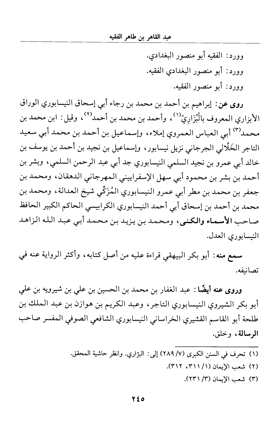 وورد: أبو منصور البغدادي الفقيه.