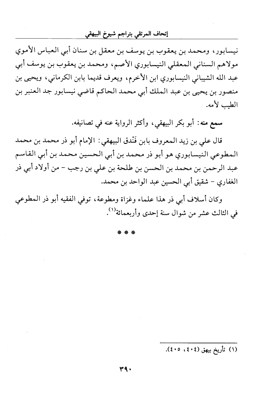 نيسابور، ومحمَّد بن يعقوب بن يوسف بن معقل بن سنان أبي العباس الأموي مولاهم السناني المعقلي النيسابوري الأصم، ومحمَّد بن يعقوب بن يوسف أبي عبد الله الشيباني النيسابوري ابن الأخرم، ويعرف قديما بابن الكرماني، ويحيى بن منصور بن يحيى بن عبد الملك أبي محمَّد الحاكم قاضي نيسابور جد العنبر بن الطيب لأمه.