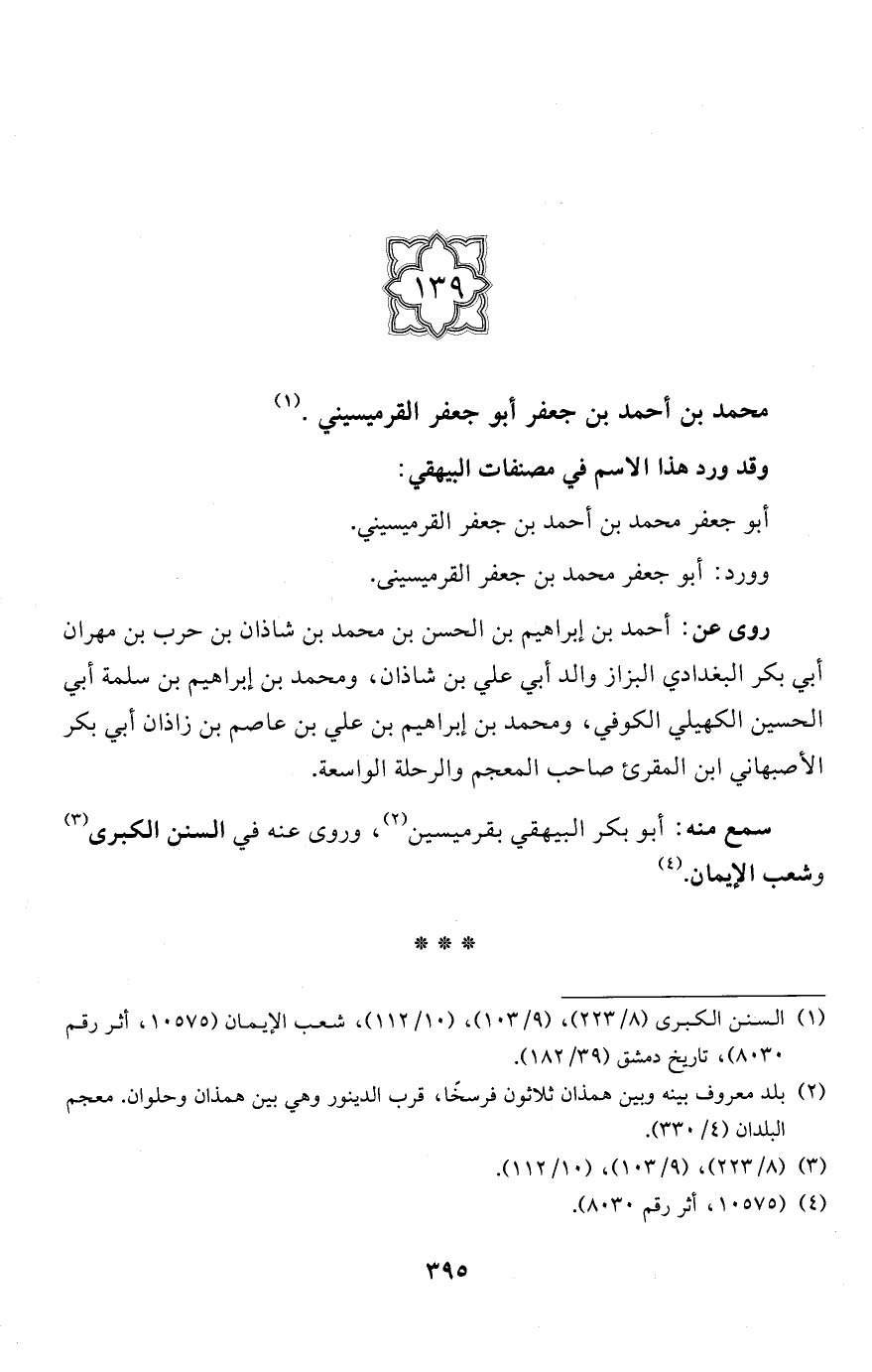 (139) محمَّد بن أحمد بن جعفر أبو جعفر القرميسيني. (¬1)