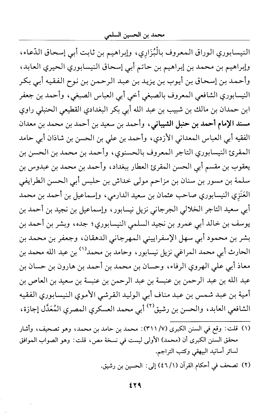 (¬1) قلت: وقع في السنن الكبرى (7/ 311): محمَّد بن حامد بن محمَّد، وهو تصحيف، وأشار محقق السنن الكبرى أن (محمَّد) الأولى ليست في نسخة مص، قلت: وهو الصواب الموافق لسائر أسانيد البيهقي وكتب التراجم.