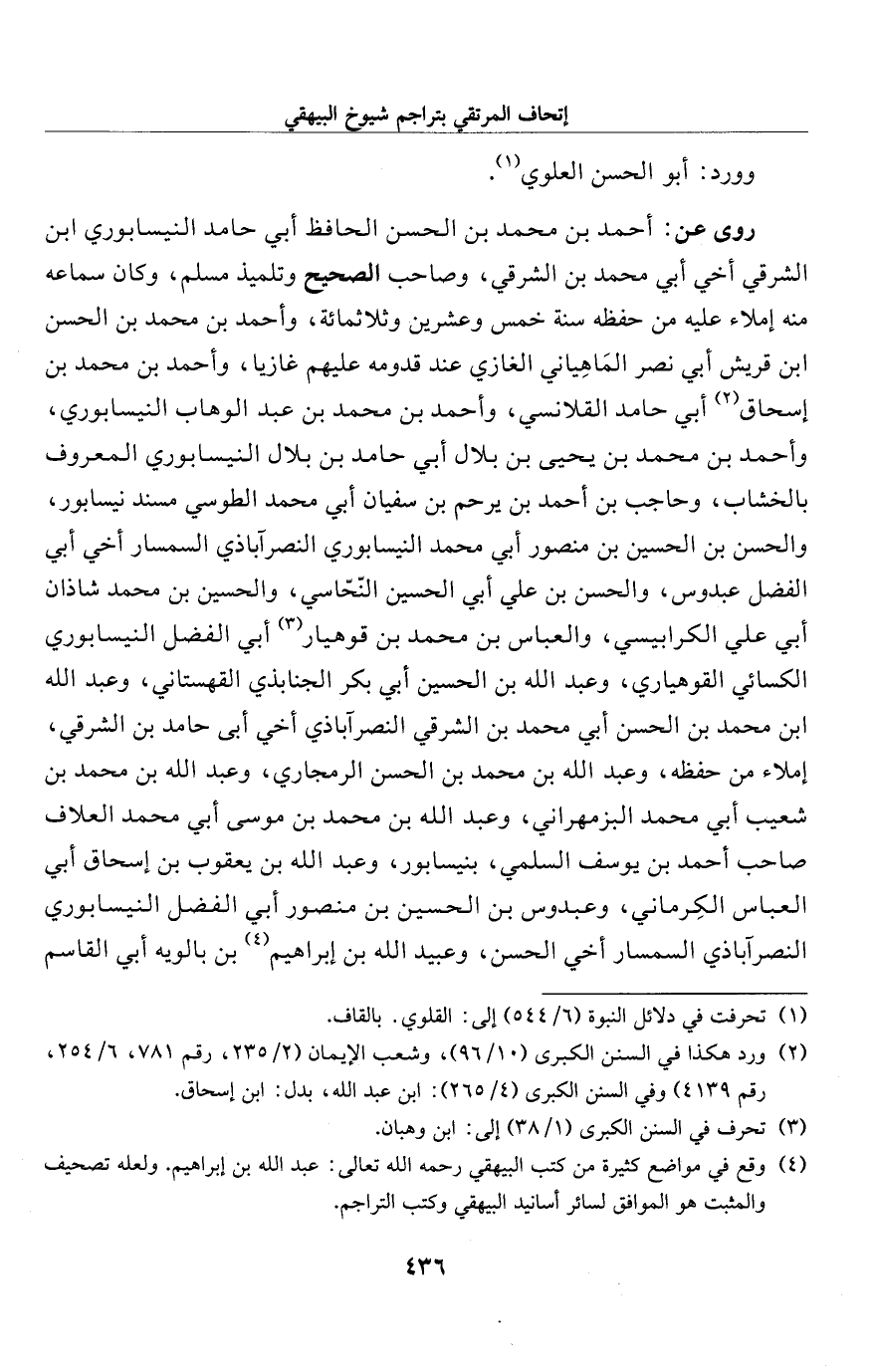(¬2) ورد هكذا في السنن الكبرى (10/ 96)، وشعب الإيمان (2/ 235، رقم 781، 6/ 254، رقم 4139) وفي السنن الكبرى (4/ 265): ابن عبد الله، بدل: ابن إسحاق.