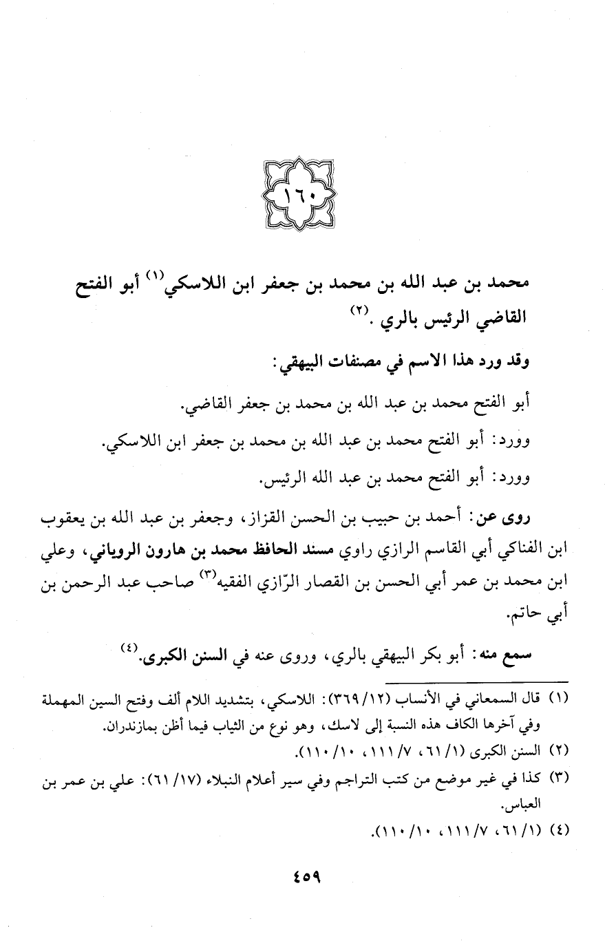 (160) محمَّد بن عبد الله بن محمَّد بن جعفر ابن اللاسكي (¬1) أبو الفتح القاضي الرئيس بالري. (¬2)