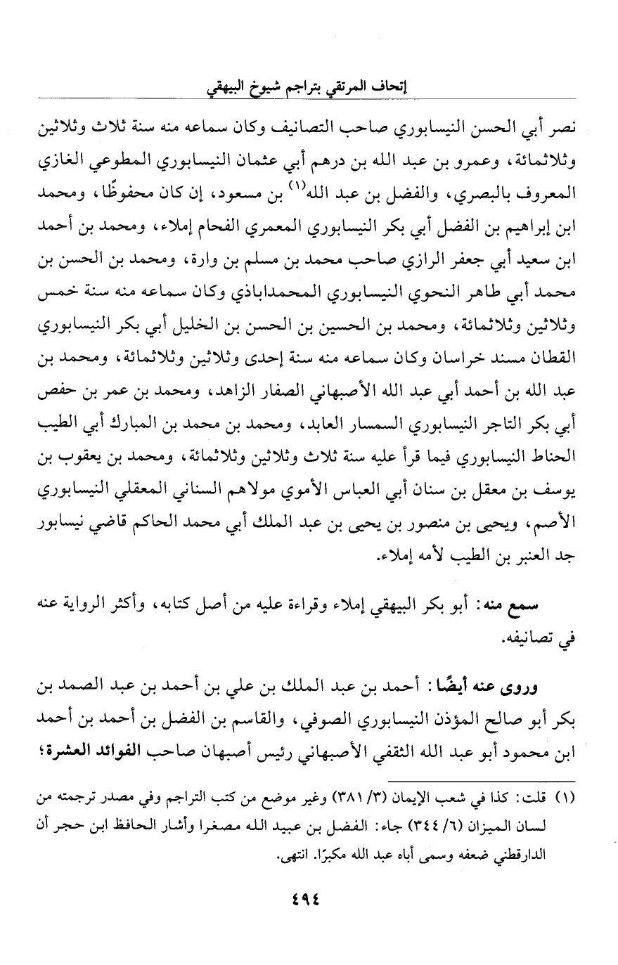 (¬1) قلت: كذا في شعب الإيمان (3/ 381) وغير موضع من كتب التراجم وفي مصدر ترجمته من لسان الميزان (6/ 344) جاء: الفضل بن عبيد الله مصغرا وأشار الحافظ ابن حجر أن الدارقطني ضعفه وسمى أباه عبد الله مكبرًا. انتهى.