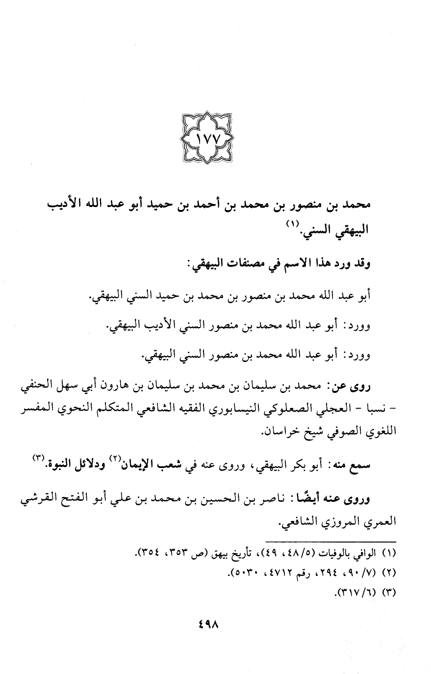 (177) محمَّد بن منصور بن محمَّد بن أحمد بن حميد أبو عبد الله الأديب البيهقي السني. (¬1)