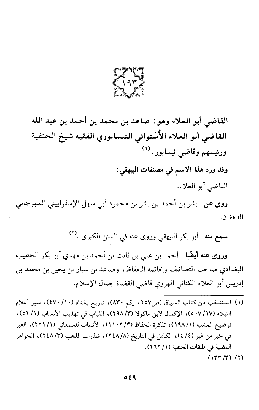 (193) القاضي أبو العلاء وهو: صاعد بن محمَّد بن أحمد بن عبد الله القاضي أبو العلاء الأُسْتوائي النيسابوري الفقيه شيخ الحنفية ورئيسهم وقاضي نيسابور. (¬1)