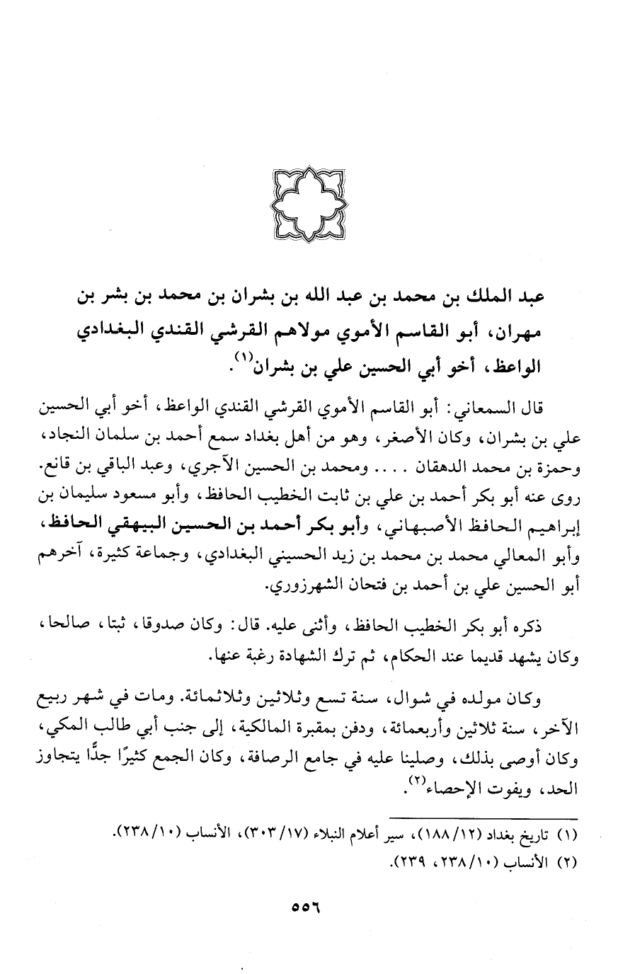 (¬1) تاريخ بغداد (12/ 188)، سير أعلام النبلاء (17/ 303)، الأنساب (10/ 238).