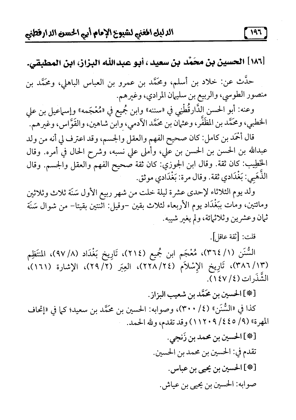[186] الحسين بن محَمَّد بن سعيد، أبو عبد الله البزاؤ، ابن المطبقي.