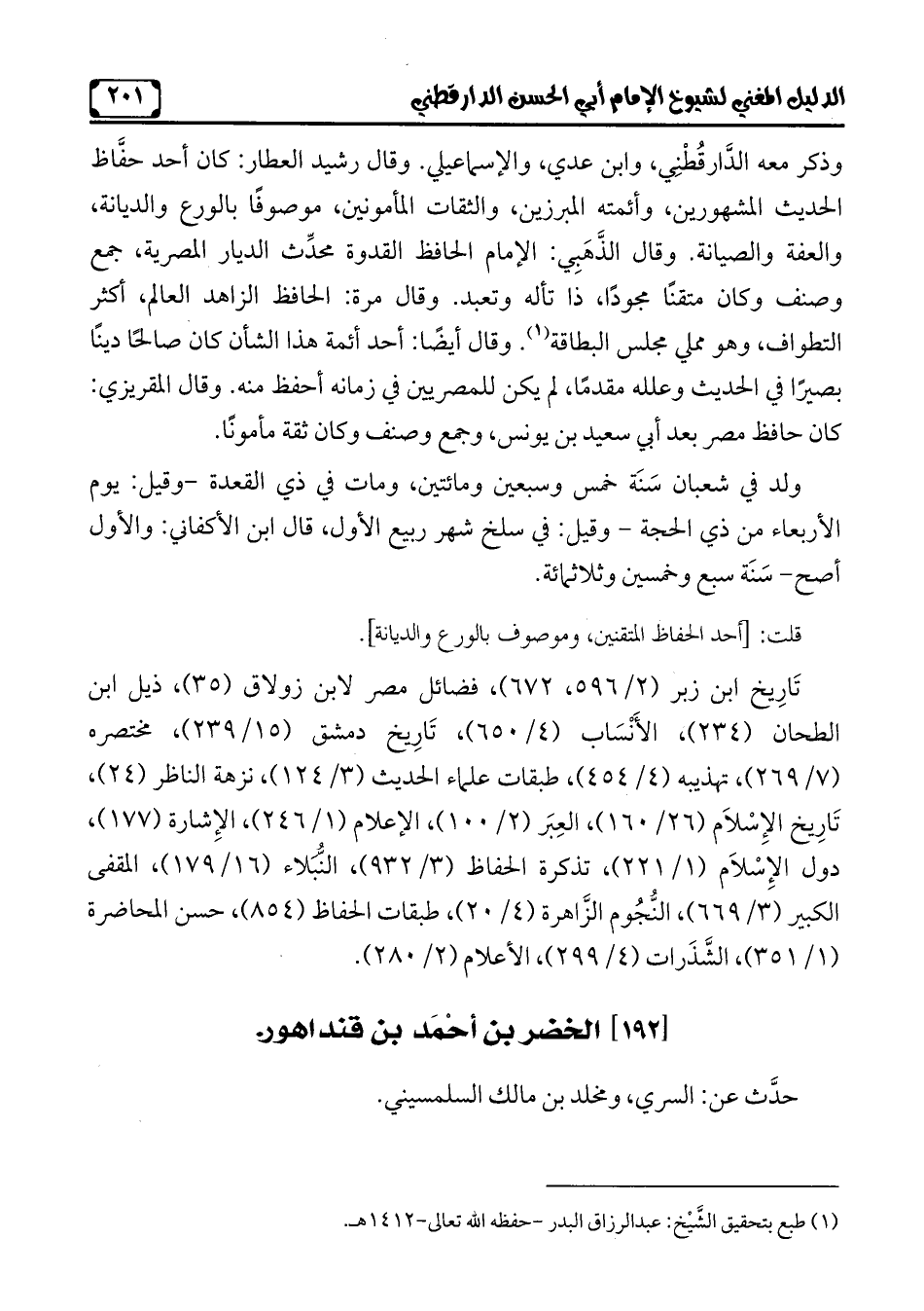 (¬1) طبع بتحقيق الشّيخ: عبد الرزّاق البدر -حفظه الله تعالى- 1412 هـ