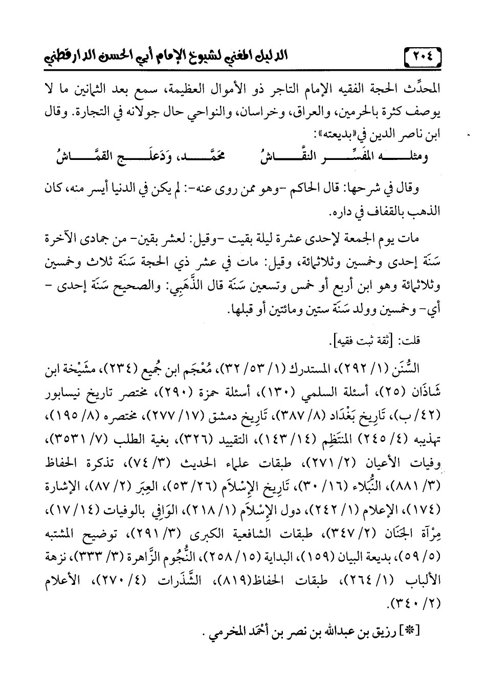 كتاب الدليل المغني لشيوخ الإمام أبي الحسن الدارقطني