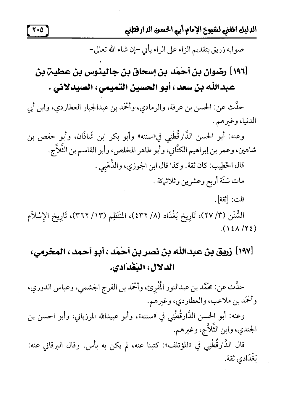 كتاب الدليل المغني لشيوخ الإمام أبي الحسن الدارقطني