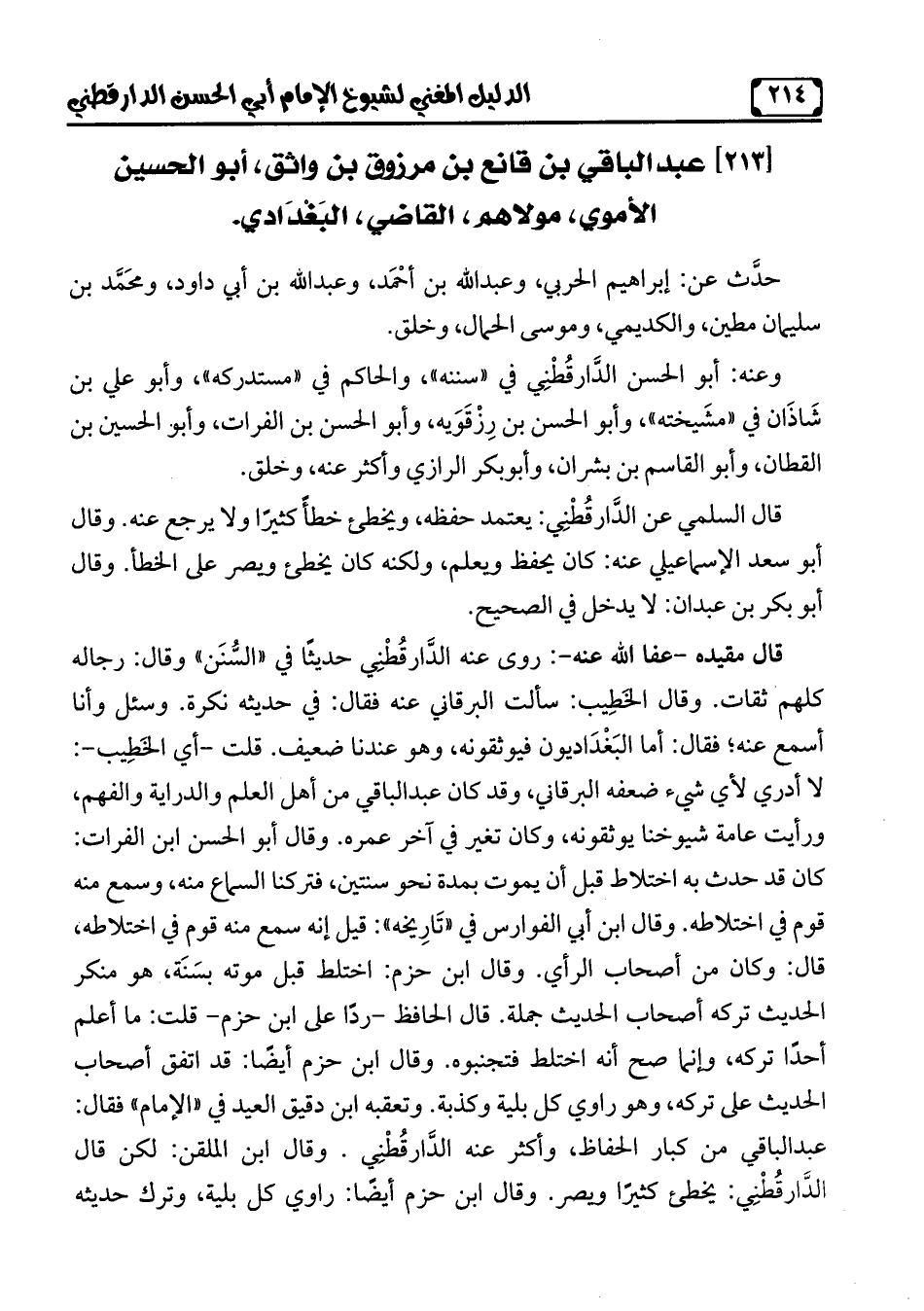 [213] عبد الباقي بن قانع بن مرزوق بن واثق، أبو الحسين الأموى، مولاهم، القاضي، البَغْدَادي.