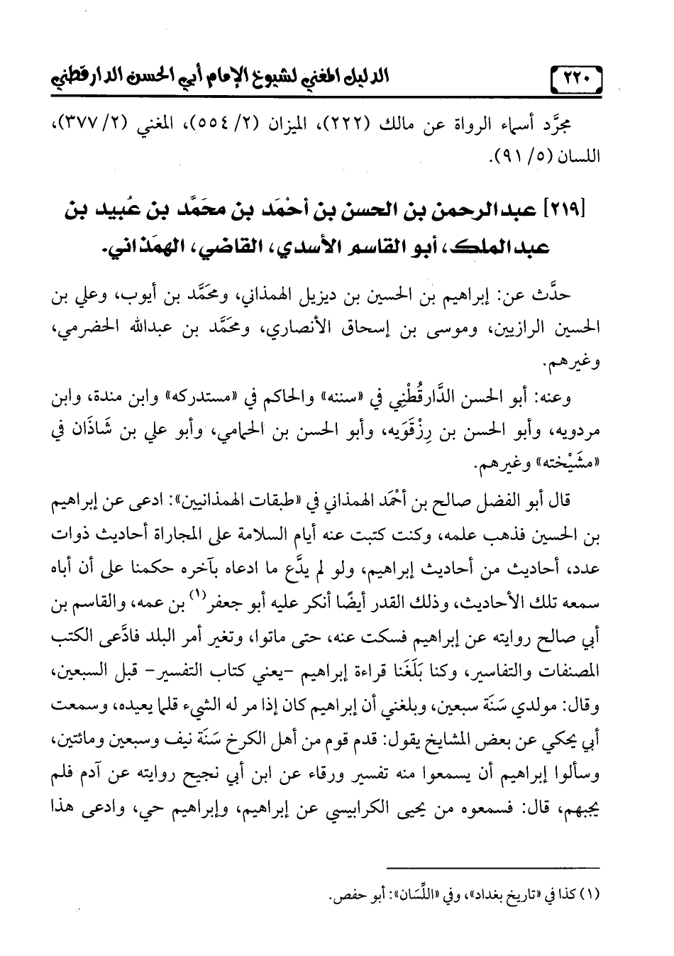 [219] عبد الرّحمن بن الحسن بن أحْمَد بن محَمَّد بن عُبيد بن عبد الملك، أبو القاسم الأسدي، القاضي، الهمَذاني.