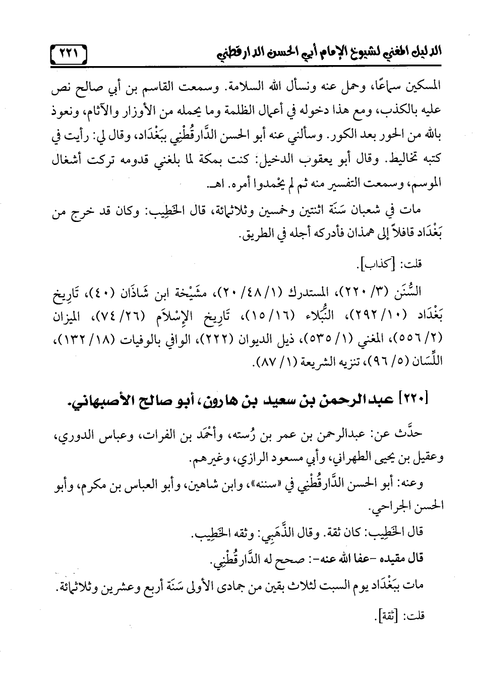 كتاب الدليل المغني لشيوخ الإمام أبي الحسن الدارقطني