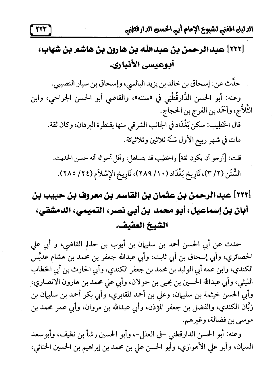 [222] عبد الرّحمن بن عبد الله بن هارون بن هاشم بن شهاب، أبوعيسى الأنباري.