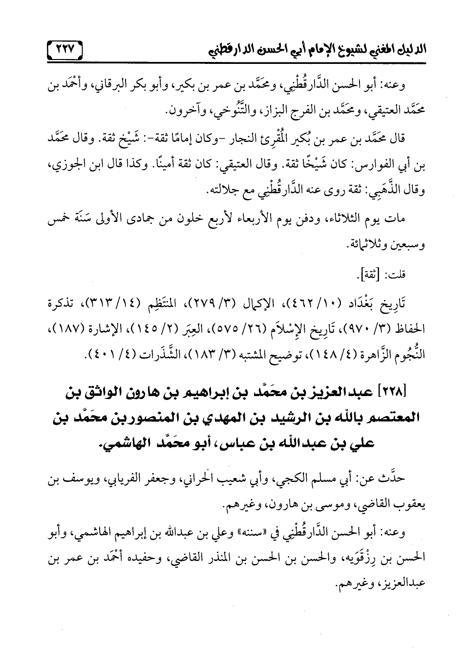 [228] عبد العزيز بن محَمَّد بن إبراهيم بن هارون الواثق بن المعتصم بالله بن الرشيد بن المهدي بن المنصور بن محَمَّد بن على بن عبد الله بن عبّاس، أبو محَمَّد الهاشمى.