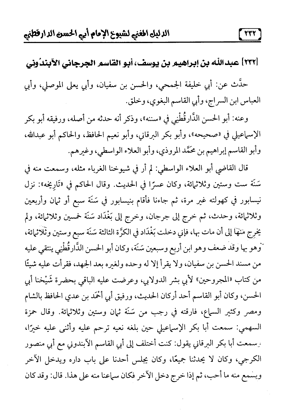 [232] عبد الله بن ابراهيم بن يوسف، أبو القاسم الجرجاني الآبندُوني