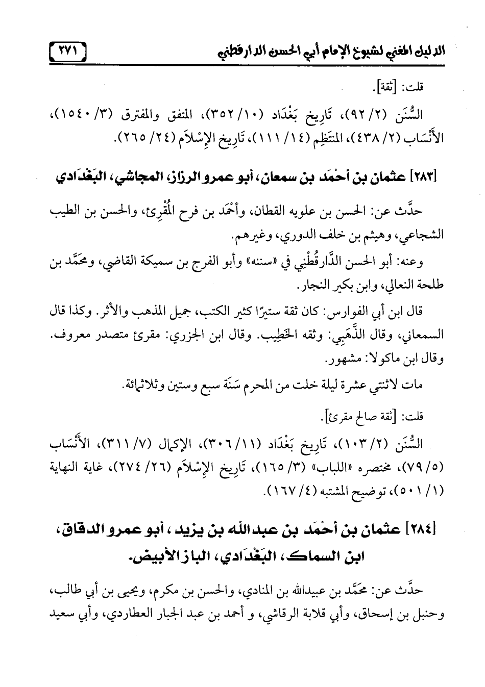 [283] عثمان بن أحْمَد بن سمعان، أبو عمروالرزاز، المجاشي، البَغْدَادي