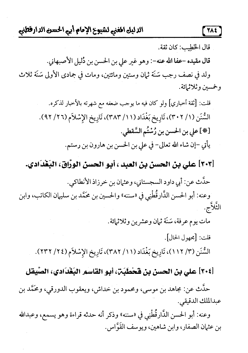 كتاب الدليل المغني لشيوخ الإمام أبي الحسن الدارقطني