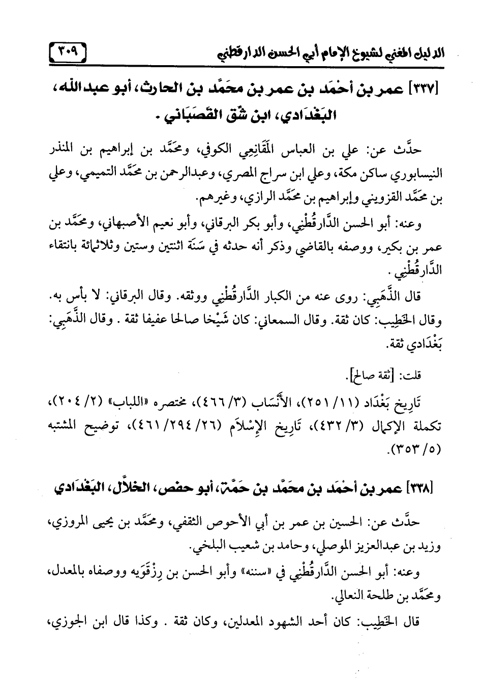 [337] عمر بن أحْمَد بن عمر بن محَمَّد بن الحارث، أبو عبد الله، البَغْدَادي، ابن شَّق القَصَبَاني.