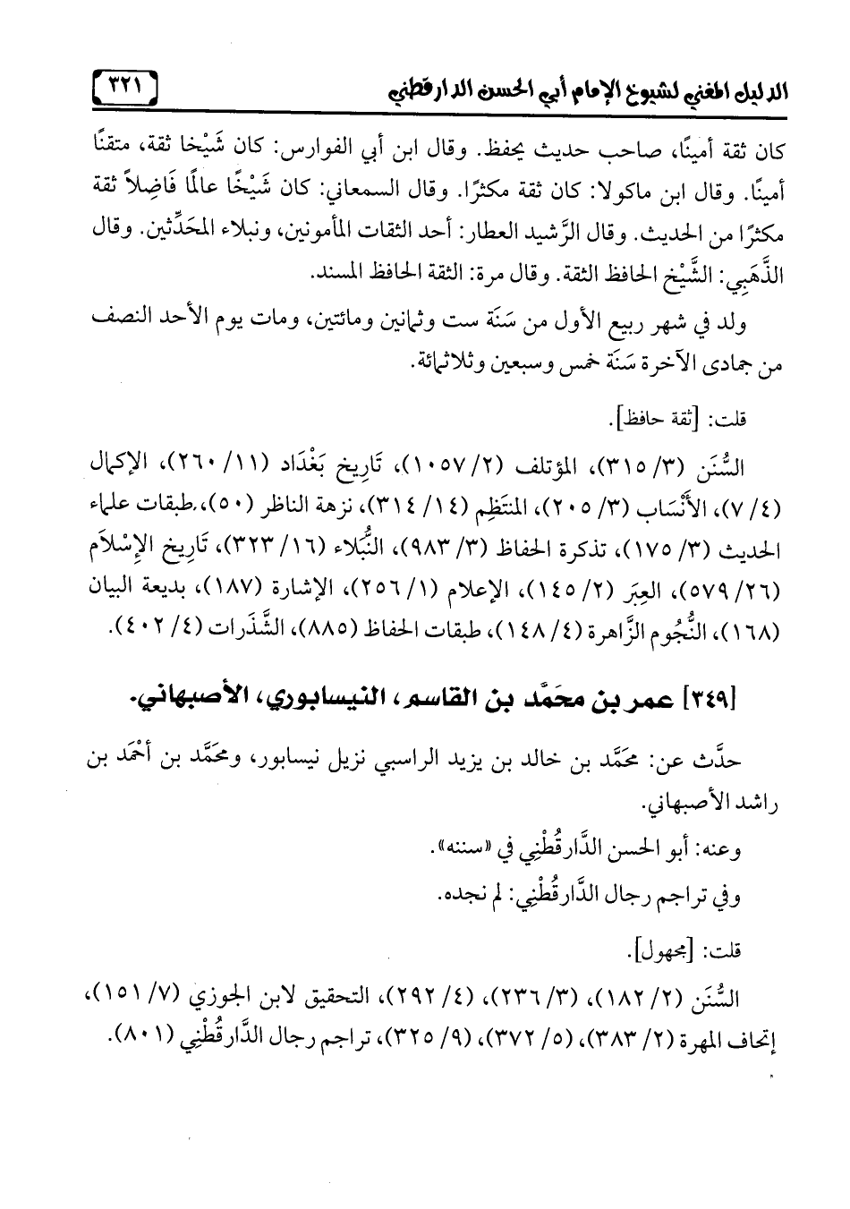 كتاب الدليل المغني لشيوخ الإمام أبي الحسن الدارقطني