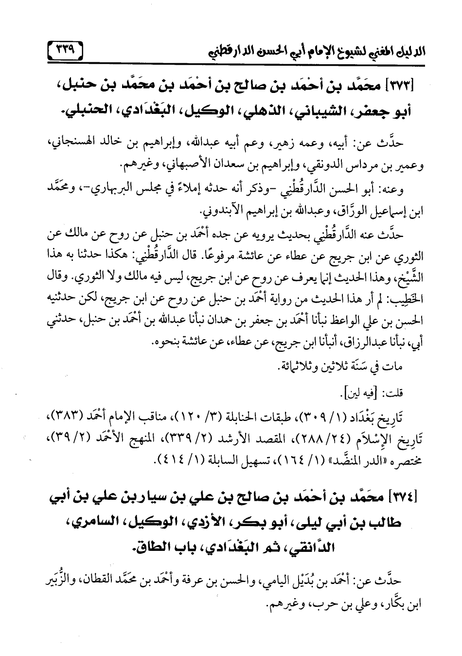 [373] محَمَّد بن أحْمَد بن صالح بن أحْمَد بن محَمَّد بن حنبل، أبو جعفر، الشيباني، الذهلي، الوكيل، البَغْدَادي، الحنبلي.