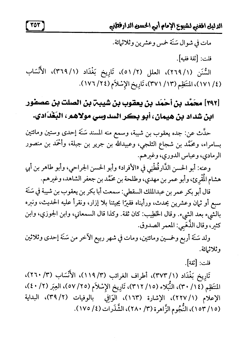 [392] محَمَّد بن أحْمَد بن يعقوب بن شيبة بن الصلت بن عصفور ابن شداد بن هيمان، أبو بكر السدوسي مولاهم، البَغْدَادي.