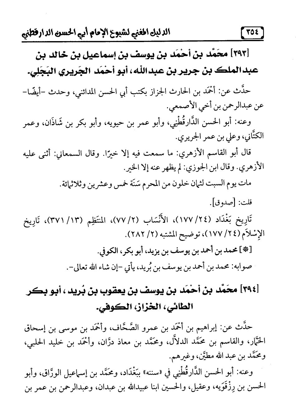 [394] محَمَّد بن أحْمَد بن يوسف بن يعقوب بن بُريد، أبو بكر الطائع، الخزاز، الكوفي.