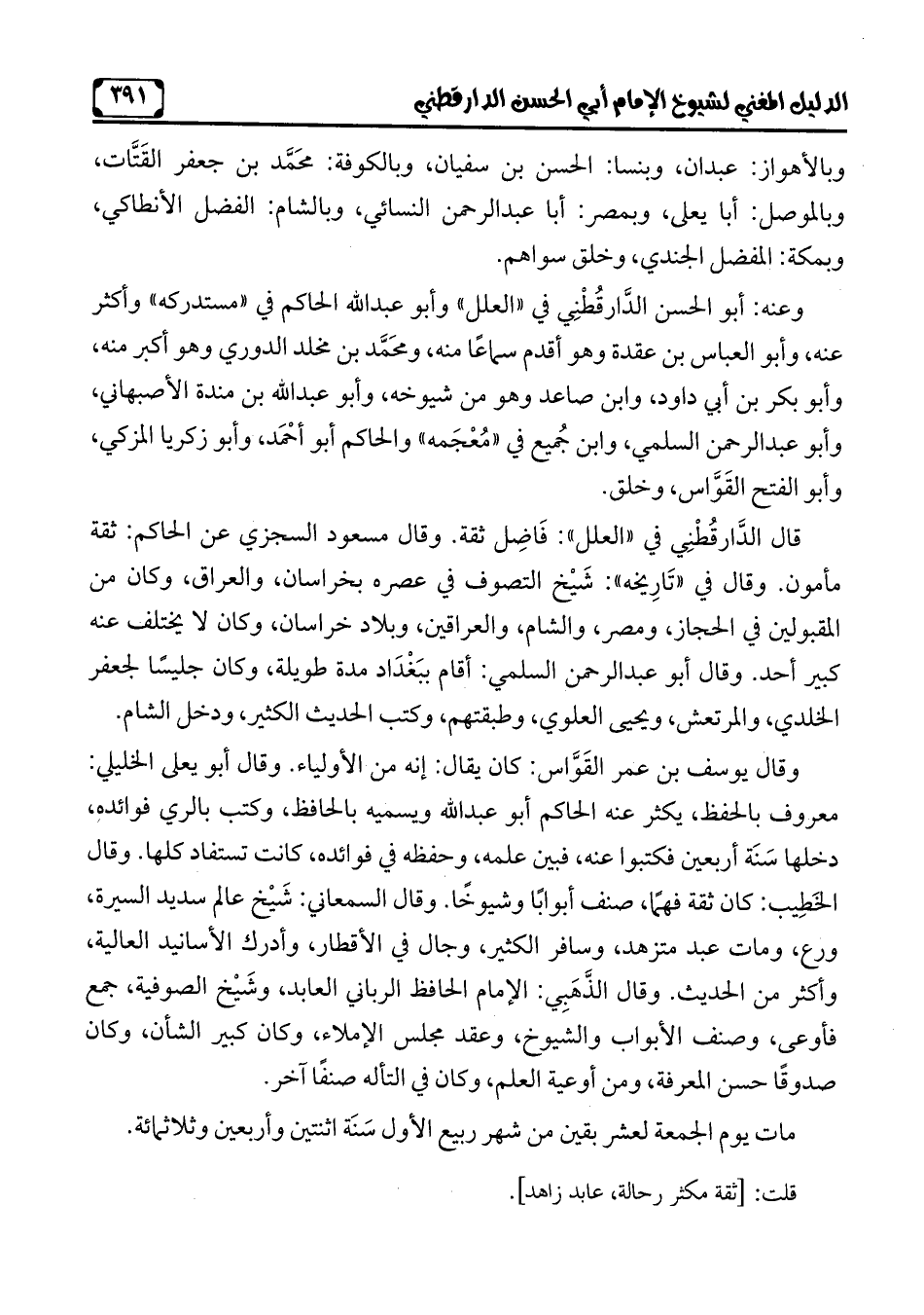 كتاب الدليل المغني لشيوخ الإمام أبي الحسن الدارقطني