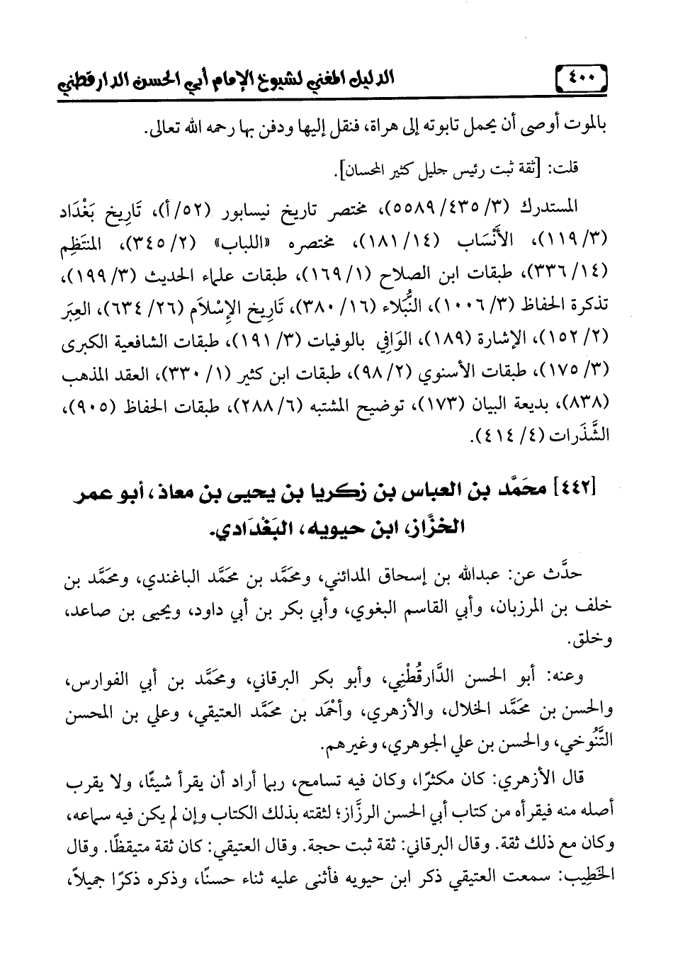 [442] محَمَّد بن العباس بن زكريا بن يحيى بن معاذ، أبو عمر الخزَّاز، ابن حيويه، البَغْدَادي.