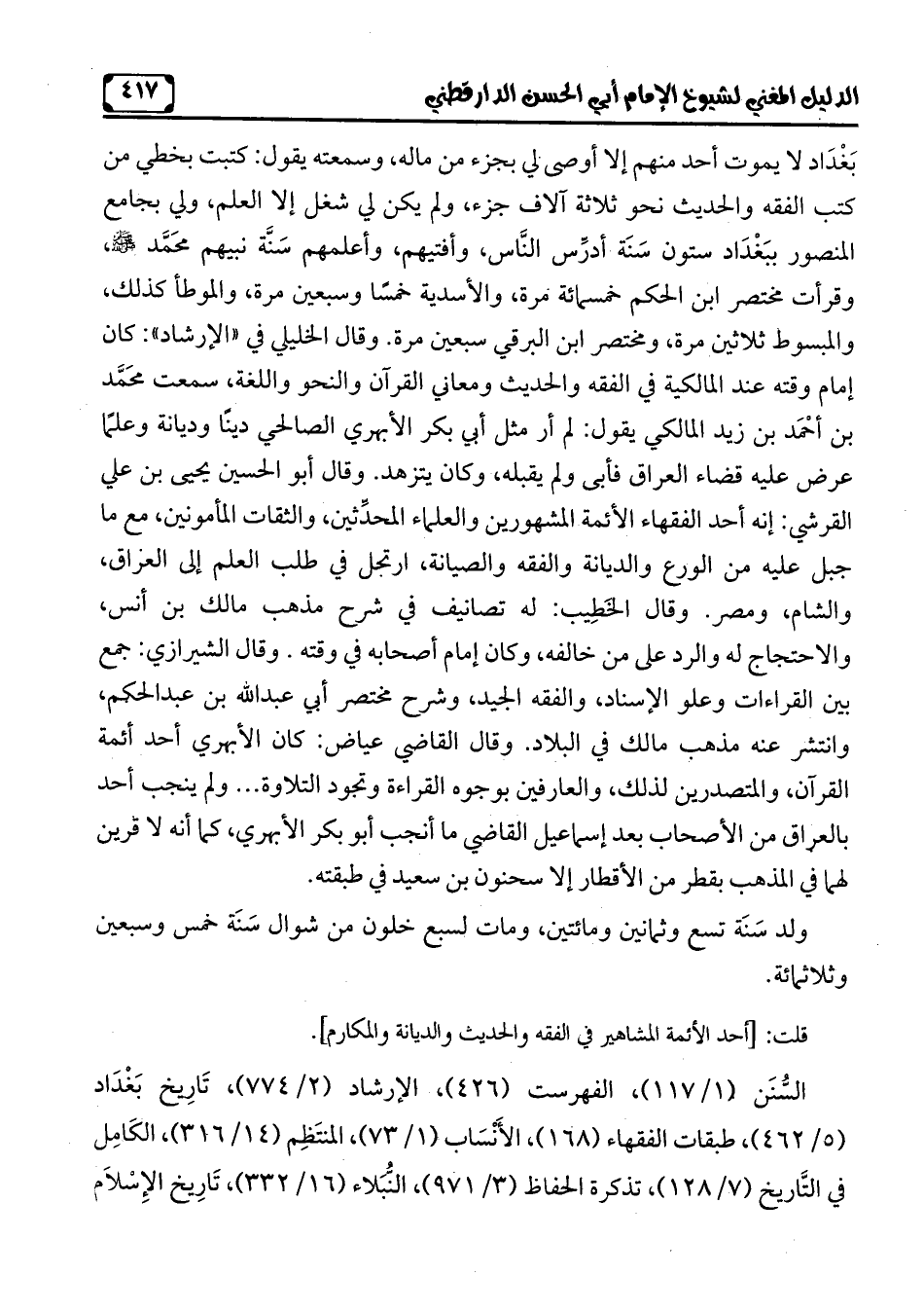 كتاب الدليل المغني لشيوخ الإمام أبي الحسن الدارقطني