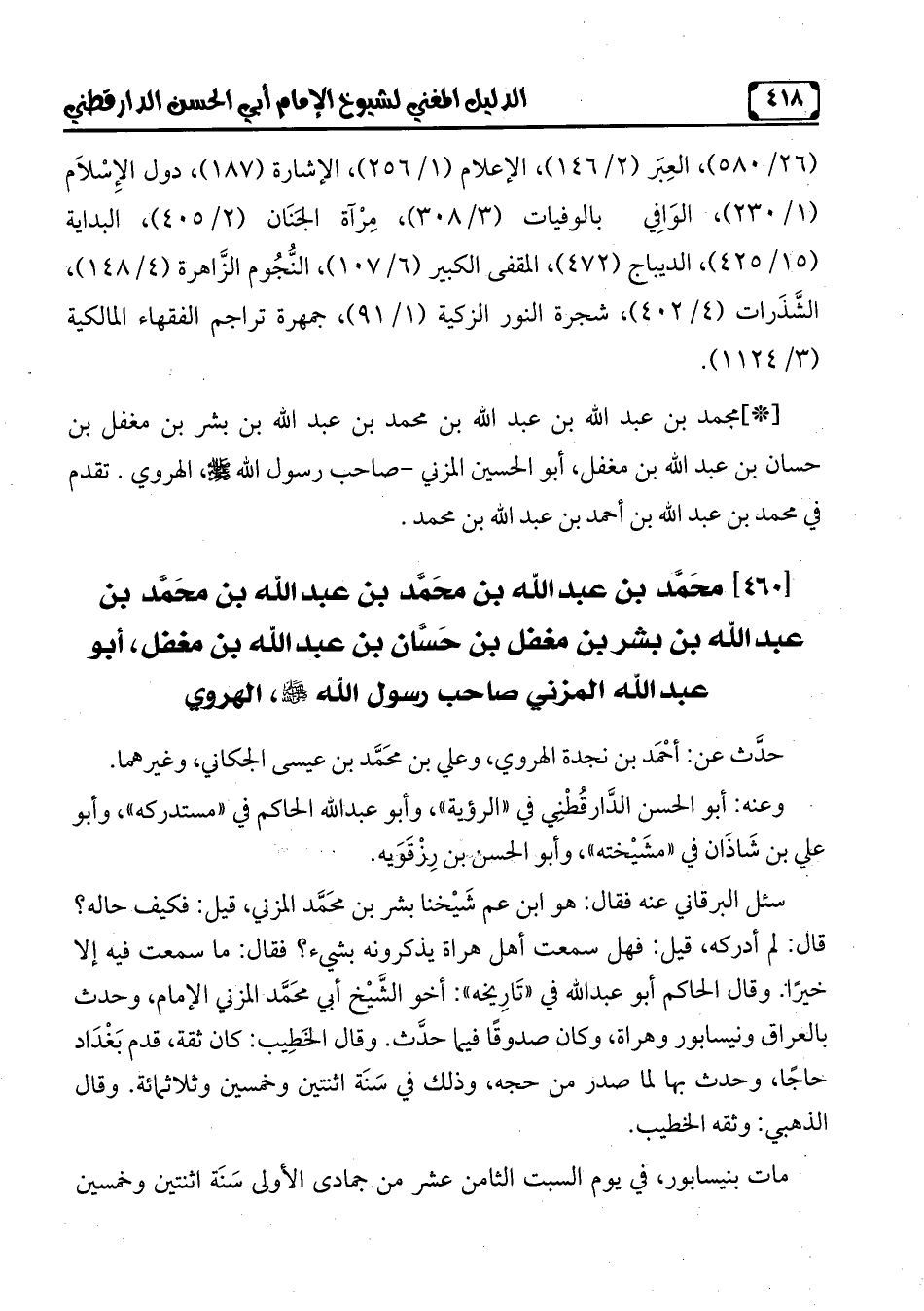 [460] محَمَّد بن عبد الله بن محَمَّد بن عبد الله بن محَمَّد بن عبد الله بن بشر بن مغفل بن حَسَّان بن عبد الله بن مغفل، أبو عبد الله المزني صاحب رسول الله - صلّى الله عليه وسلم -، الهروي