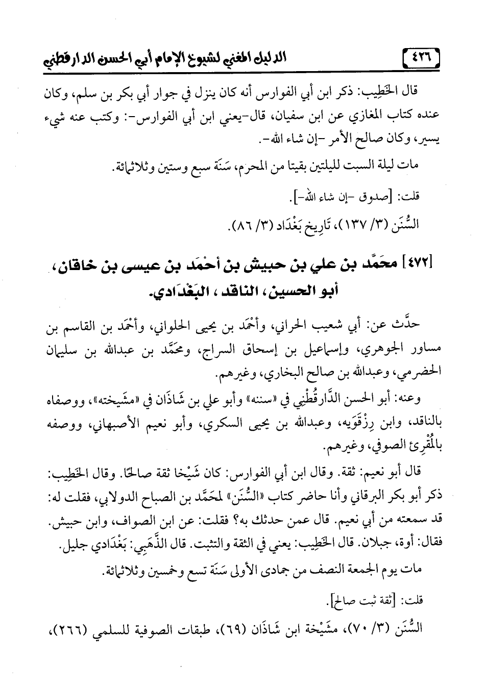[472] محَمَّد بن علي بن حبيش بن أحْمَد بن عيسى بن خاقان، أبو الحسين، الناقد، البَغْدَادي.