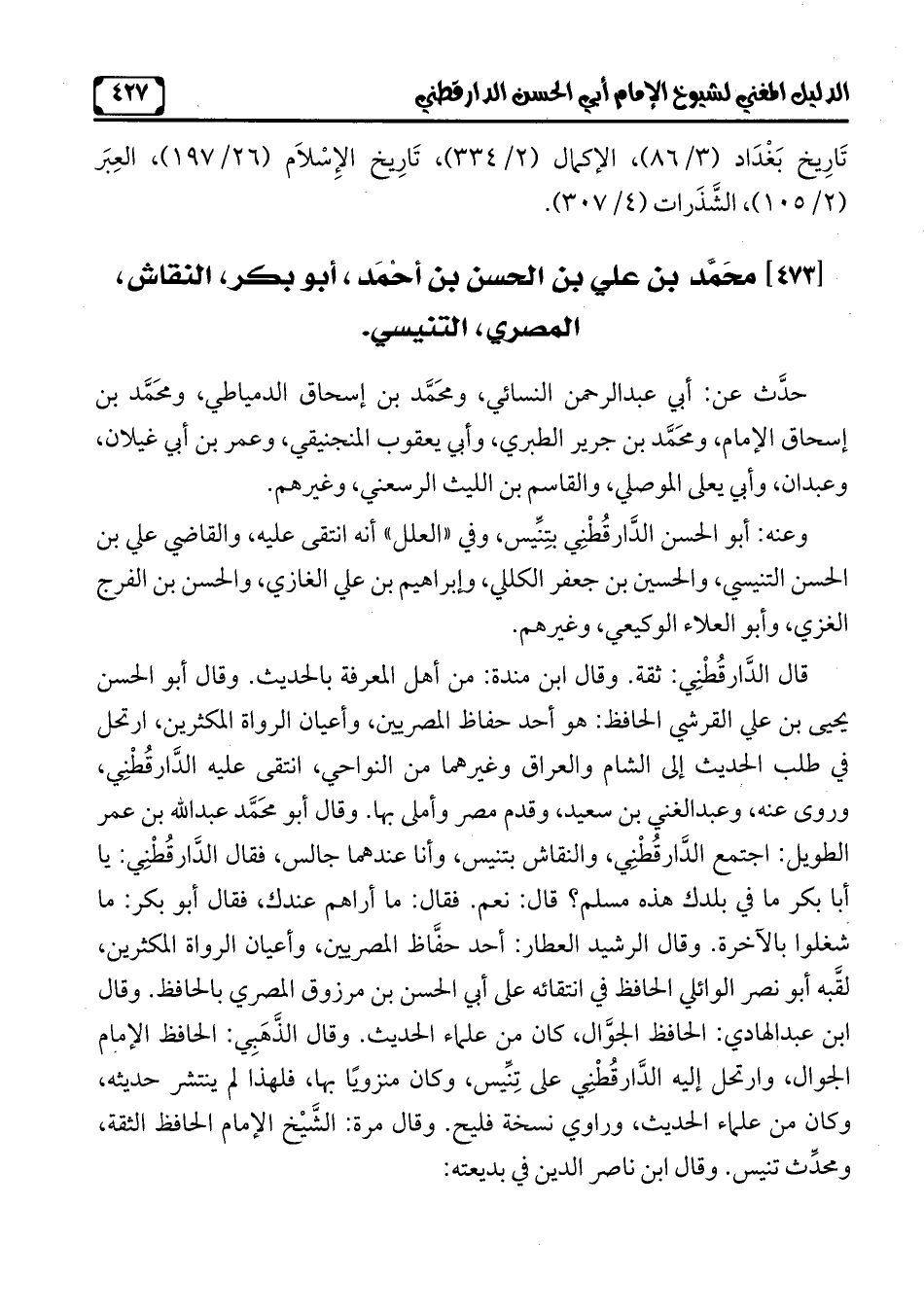 [473] محَمَّد بن على بن الحسن بن أحْمَد، أبو بكر، النقاش، المصري, التنيسي.