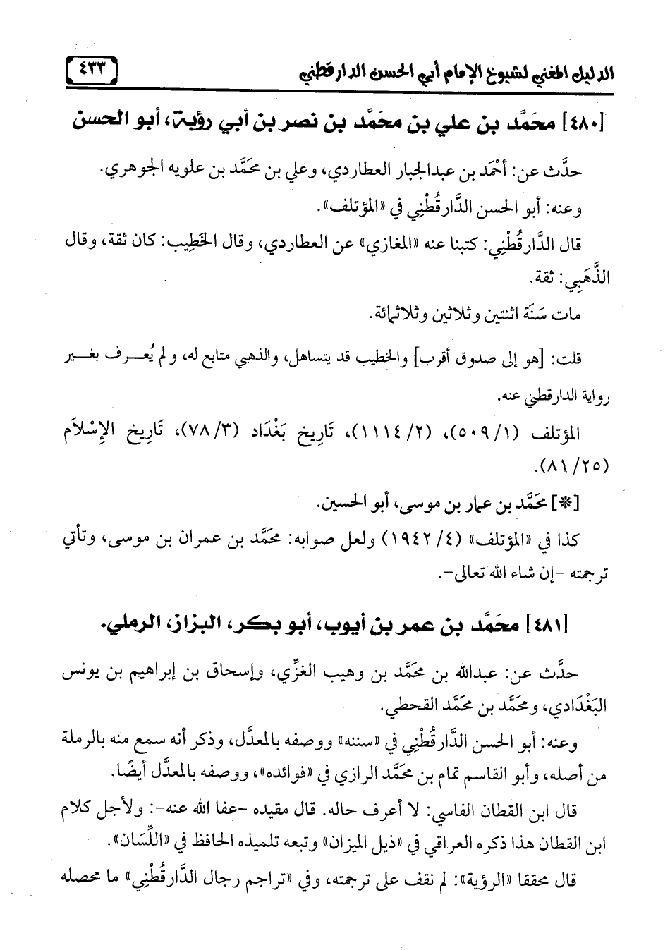 كتاب الدليل المغني لشيوخ الإمام أبي الحسن الدارقطني