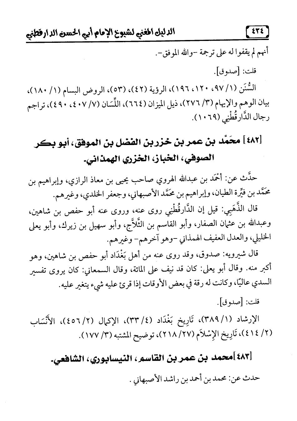 كتاب الدليل المغني لشيوخ الإمام أبي الحسن الدارقطني